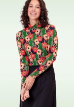 “Retro blooms, timeless grooves!” Deze fijne top met col is een echte eyecatcher dankzij haar kleurrijke retro bloemenprint in o.a. groen en oranje. Ze heeft een speelse col, lange mouwen en een aansluitende pasvorm. Uitgevoerd in een heerlijk soepele en stretchy EcoVero viscosemix die niet alleen comfortabel draagt, maar ook duurzaam is. * Colkraag * Lange mouwen * Lang genoeg om op een normale heupbroek te dragen