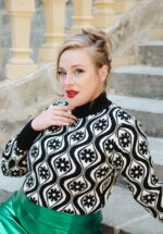 ”Retro vibes only!” Deze groovy sweater is niet alleen mooi om te zien, maar houdt je ook nog eens heerlijk warm tijdens de koudere dagen! Ze is uitgevoerd in een fijngebreide, soepele en stretchy, organische katoen voorzien van een retro bloemenpatroon in zwart en wit. * Opstaande kraag * Stretchy ribboorden * Lang genoeg om op een normale heupbroek te dragen