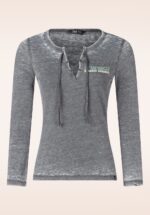 “2 Wheels Forever… no rules, just roads.” Dit stoere shirt met lange mouwen heeft een rijgdetail met veter bij de halslijn, een stoere print en is uitgevoerd in een heerlijk zachte, stretchy katoenmix met een grijs gemêleerde vintage-look wassing, die super comfortabel draagt. * Lange mouwen * Rijgdetail met veter * Lang genoeg om op een normale heupbroek te dragen