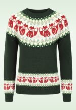 “Stay cozy, stay foxy!” Deze zachte en comfortabele jumper is gemaakt van heerlijk fijngebreid, stretchy organisch katoen in donkergroen, met een grafisch patroon van schattige vosjes in roestbruin. * Ronde halslijn * Lange mouwen * Stretchy ribboorden * Lang genoeg om op een normale heupbroek te dragen