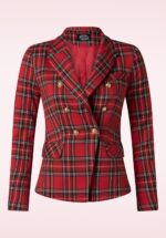 ”Say yes, take risks, and wear this fabulous Gillian Tartan blazer!” Deze double breasted beauty is voorzien van gouden metalen knopen, schoudervullingen en heeft een fantastische tartan ruit. Ze is uitgevoerd in een stevige, maar soepele stof en is volledig gevoerd voor extra comfort. * Blazer * Revers kraag * Voorzien van schoudervulling * Voorzien van gouden metalen knopen * Klepzakjes voorzijde * Geheel gevoerd