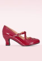 “Timeless sophistication, redefined in burgundy patent.” Deze Mary Jane pumps met Louis stijl hak zijn uitgevoerd in bordeauxrood imitatie lakleder met sierlijke uitsneden. * Rond neusje * Mary-Jane * Verstelbaar bandje * Stevig hakje in Louis stijl * Comfy binnenzool * Anti-slip zool