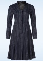 “Smart, sleek, and unapologetically feminine!” De prachtige Gennifer jurk heeft een flatterende V-halslijn, lange mouwen en loopt vanaf de taille subtiel uit in een semi-swing rok. Uitgevoerd in een stevige maar soepel vallende donkerblauwe stof met witte pinstripes, die heerlijk comfortabel draagt. Perfect voor zowel kantoorlooks als chique casual outfits. * Swing jurk * V-halslijn * Gevoerd * Stoffen knopenreeks * Voorzien van zakken! * Valt bij een lengte van 1,70 m over de knie