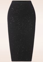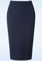 ”Sparkle all day long!” Elegant hoog taille model, uitgevoerd in een stretchy navyblauw stofje dat je rondingen perfect benadrukt terwijl ze bezaaid is met zilverkleurige glitters. * Hoog taille model * Geen rits of knopen * Valt over de knie bij een lengte van 1,70 m