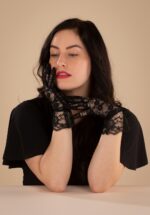 Korte handschoenen met bloemenkant in zwart