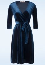 Liz fluwelen wikkeljurk in marineblauw