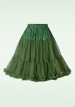 ”Behind every great twirl is a trusty petticoat!” De 2 lagen stof zorgen voor extra volume, bewegen gracieus met je mee en zijn afgezet met speelse ruches aan de onderzijde. De bovenkant is uitgevoerd in bosgroene tule en de onderrok is gemaakt van een glanzende sateen. Afgewerkt met een elastieken band. Deze petticoat geeft iedere swing jurk net dat beetje extra! * Geschikt voor al onze swing dresses en rokken * Elastische tailleband * Valt over de knie bij een lengte 1,70 m