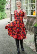 ”A dress that will make you feel like a flower!” Deze droomjurk heeft een elegante geplooide overslag, 3/4 mouwen en een brede tailleband die je taille perfect benadrukt. Vanaf de taille loopt ze uit in een zwierige swing rok waardoor er een super vrouwelijk silhouet ontstaat. Uitgevoerd in een soepele en stretchy stof met een prachtige bloemenprint in rood en oranjetinten, die heerlijk draagt. “Stop dreaming and start ordering!” * Swing model * Gevoerde top * Vaste geplooide overslag * 3/4 mouwen * Brede tailleband * Blinde rits achterzijde * Julia Fiore is 1,70 m * Valt bij een lengte van 1,70 m over de knie