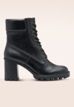 “March to your own rhythm… cruelty-free.” Deze stoere enkellaarsjes met hoge blokhak en trackzool zijn uitgevoerd in mat zwart vegan leder met een rits- en vetersluiting. * Matte finish * Vetersluiting * Rits aan binnenzijde * Gevoerd * Stevige, hoge blokhak * Stevige trackzool * Comfy voetbed * Anti-slip * Vegan approved