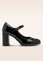 “Glossy steps and girlish charm” Deze Mary Jane stijl pumps zijn uitgevoerd in zwart vegan lakleder, voorzien van een subtiel plateau, een zacht voetbed en een schok absorberende, hoge blokhak. * Mary Jane stijl pump * Verstelbaar bandje * Schok absorberende, hoge blokhak * Subtiel plateau * Comfortabel ‘touch it’ voetbed * Vegan approved