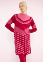 ”You won my heart!” Deze cozy jurk is uitgevoerd in een fijngebreide, zachte en stretchy, bio katoenmix voorzien van een rood en roze breipatroon met hartjes. * Geen rits of knopen; aantrekken en ready to go! * Valt net boven de knie bij een lengte van 1,70 m