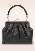 “Graceful pleats, timeless elegance.” Deze zwarte beauty heeft een opvallende goudkleurige metalen klipsluiting voor een echte vintage look. Uitgevoerd in geplooid zwart imitatieleder met een los, verstelbaar hengsel zodat je haar ook speels om je schouder kunt hangen. * Medium sized * Klipsluiting * Binnenvak met 3 extra vakjes, waarvan 1 met rits * Afneembaar hengsel * Kan crossbody gedragen worden * Volledig gevoerd * Groot genoeg voor je telefoon, sleutels, en portemonnee