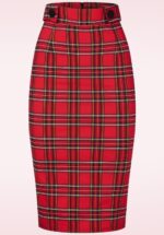 Teagan tartan pencil rok in rood
