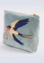 Organiseer je leven in stijl met deze mini pouch! Bewaar er make-up in, sieraden of andere snuisterijen. Uitgevoerd in een zacht, lichtblauw stofje met de luxe look and feel van fluweel, voorzien van een geborduurde zwaluw met bloemen op de voorzijde. Ook leuk om te geven, of te krijgen! 😉 * Mini pouch * Ritssluiting * Fluweel * Geborduurd in India