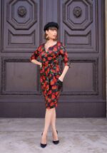 ”She walked like a secret, dressed like a headline!” Deze flirty A-lijn beauty is ontworpen door onze eigen in-house ontwerpers en is een ode aan tijdloze elegantie, geïnspireerd door de iconische stijl van Ava Gardner en haar ongedwongen charme in de film ‘Barefoot Contessa’ uit 1954. Uitgevoerd in een scarletrode, stevige, high quality stof met een hele lichte stretch waardoor Juliana een genot is om te dragen. “Red, like the Diva she is, impossible to ignore.” * A-lijn * 3/4 mouwtjes * Gevoerde top * Brede, vierkante halslijn * Bra strap holders zodat je bh bandjes niet gaan schuiven * Vaste strikbanden voor een extra ‘snatched’ taille * Blinde rits aan de achterzijde * Gorgeous Julia Fiore (Fiorevanil) is 1,70 m; haar accessoires zijn haar eigen vintage treasures * Let op; de kleur van het product op de video kan afwijken van de daadwerkelijke kleur van het product