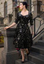 Topvintage exclusive ~ Eliane Velvet Stars swing jurk in zwart