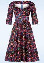 Topvintage exclusive ~ Amelia swing jurk met paddenstoelen print in donkerblauw