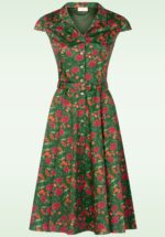 “Falling for green, autumn queen!” Deze Angie swing jurk is exclusief bij Topvintage verkrijgbaar en met liefde ontworpen door onze in-house designers! Het aansluitende lijfje heeft een elegante V-halslijn met subtiel kraagje en kapmouwtjes. Vanaf de taille loopt ze uit in een zwierige swingrok die zorgt voor een supervrouwelijk silhouet. De speelse knopenrij over de hele lengte en de bijpassende riem maken het plaatje compleet. Uitgevoerd in een stevige maar soepel vallende groene katoenmix met lichte stretch, voorzien van een all-over herfst achtige bloemenprint. * Full swing model * Gevoerde top * V-halslijn * Subtiel kraagje * Kapmouwtjes * Knopenreeks voorzijde * Zijwaartse steekzakken * Afneembare riem * Combineer met een van onze petticoats voor een extra feestelijk effect * Valt bij een lengte van 1,70 m over de knie * Exclusief bij Topvintage verkrijgbaar * Let op; de kleur van het product op de video kan afwijken van de daadwerkelijke kleur van het product