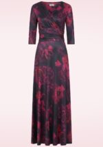 Vivian Faded Flower maxi jurk in zwart en bordeauxrood